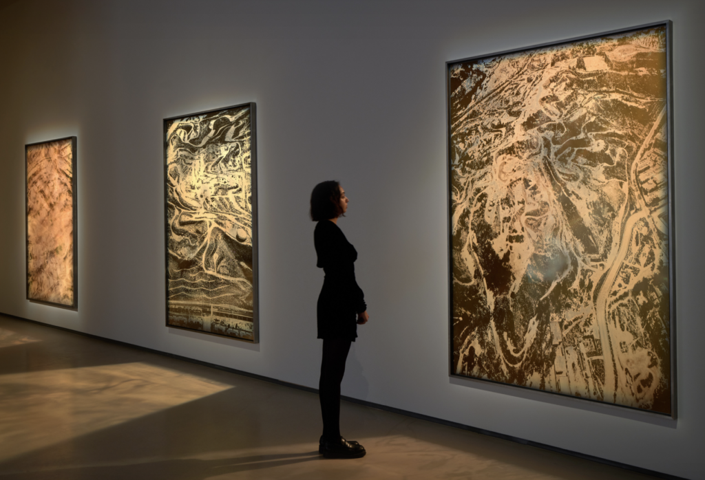À la Galerie Sean Kelly de Los Angeles, l’exposition Buried Sunshine de Julian Charrière. Dans cette nouvelle série, l’artiste dévoile Los Angeles comme une anomalie spatiale : un lieu construit non seulement grâce aux hydrocarbures, mais aussi sur eux, avec 5 000 puits de pétrole actifs dissimulés dans la ville.